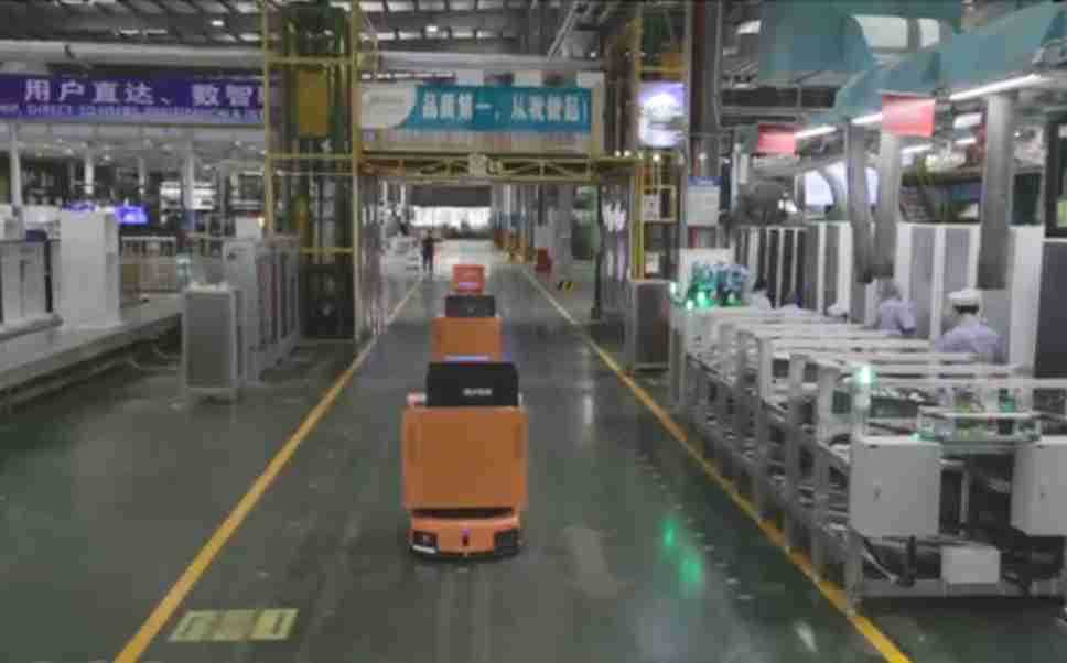 为车载冰箱物流配送打造的智能解决方案,,包含产中物流通过潜伏举升AMR搬运至线边,,产后成品物流智能仓储,,,,流程包含产中物流智能齐套入库,,线边安灯叫料AMR智能配送至线边,,,成品入库、、、出库,,,通过无人堆高车机器人,,,智能仓储管理替代人工作业管理,,实现更高存储、、、更高效率、、、更具柔性化的解决方案。。。